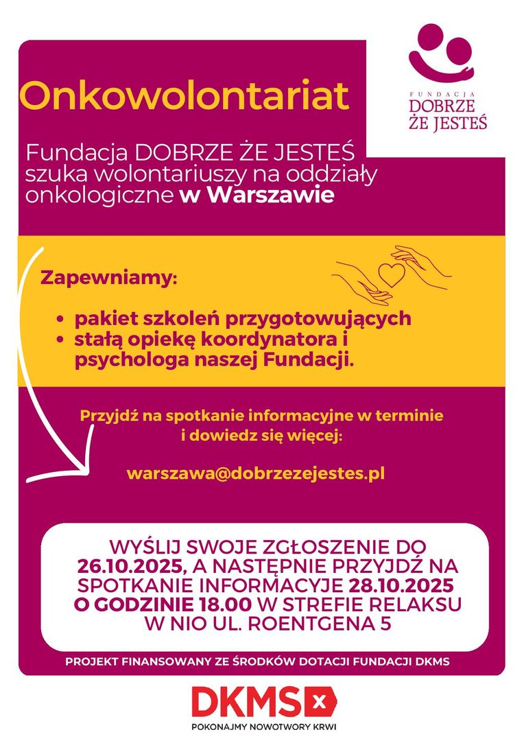 Zapraszamy osoby, które chcą zostać wolontariuszami na oddziałach onkologicznych w warszawskich szpitalach.