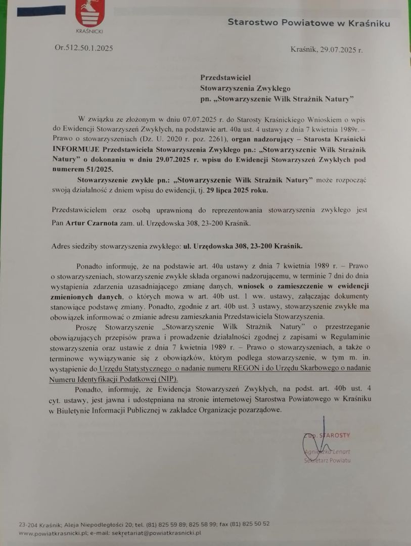 Stowarzyszenie WSN poszukuje prawnika, który nieodpłatnie podejmie się współpracy ze stowarzyszeniem, kogoś, komu nieobojętny jest los zwierząt, zwłaszcza tych dzikich zabijanych przez myśliwych i kłusowników, ginących na drogach, cierpiących godzinami bez pomocy wskutek niewydolności lub błędów systemu. Kogoś, kto wspólnie z nami powalczy o poprawę ich losu w świecie zdominowanym przez ludzi i ich cele.