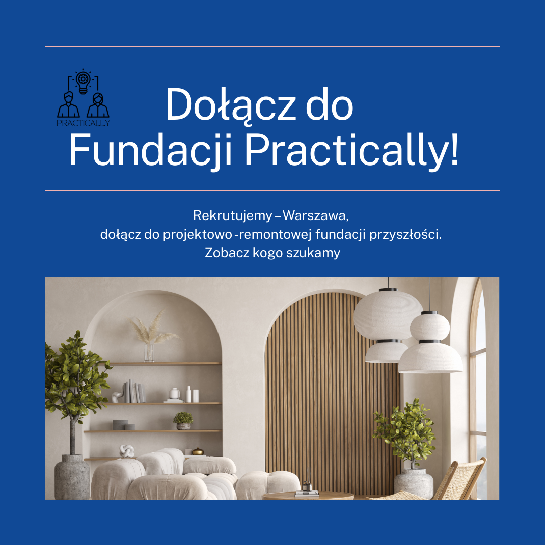Dołącz do zespołu Practically – jedynej w Polsce fundacji projektowo-remontowej. Szukamy ludzi z energią, których przeszkolimy od zera do Project Managera.