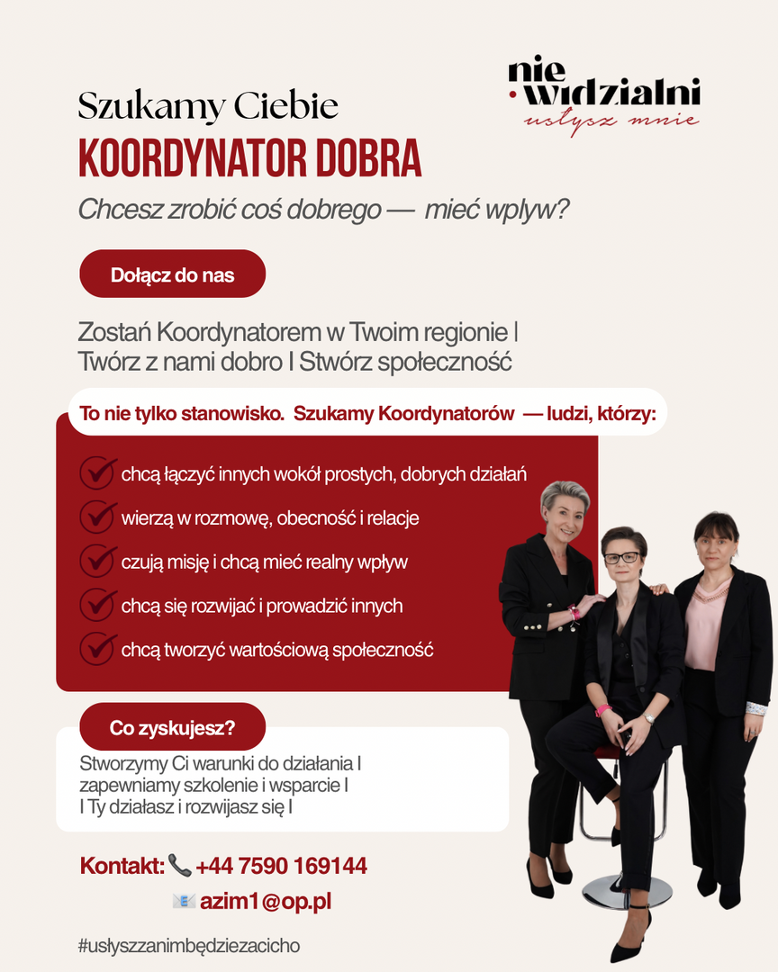 Do międzynarodowej Fundacji „Niewidzialni. Usłysz Mnie” zapraszamy osoby, które chcą współtworzyć dobro – po ludzku, prawdziwie, z sensem.